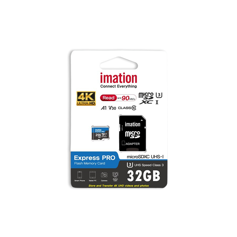IMATION microSD 32GB UHS-I U3 V30 4K je visokokvalitetna memorijska kartica dizajnirana za upotrebu u uređajima koji zahtijevaju brzu i pouzdanu pohranu, kao što su kamere visoke rezolucije, pametni telefoni, tableti, dronovi i druge napredne uređaje.